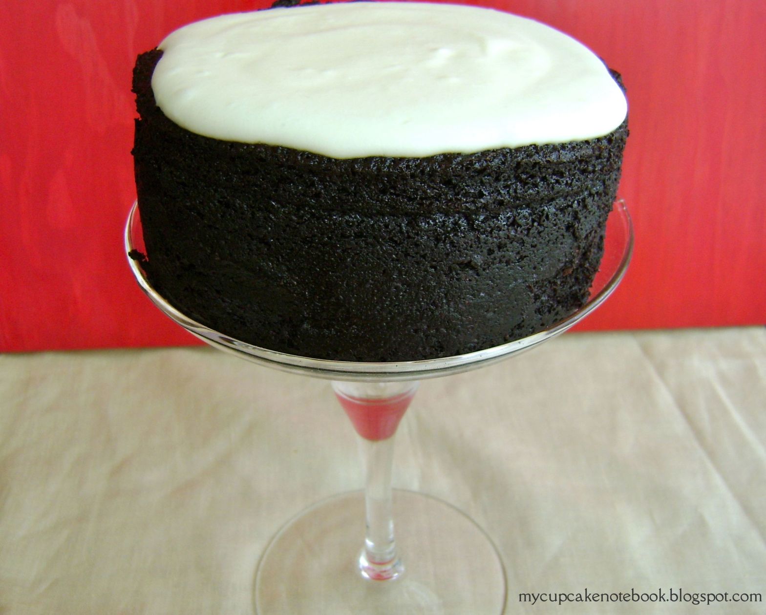 La receta de hoy es un pastel de tres capas, de chocolate con mermelada de moras casera y frosting de queso.